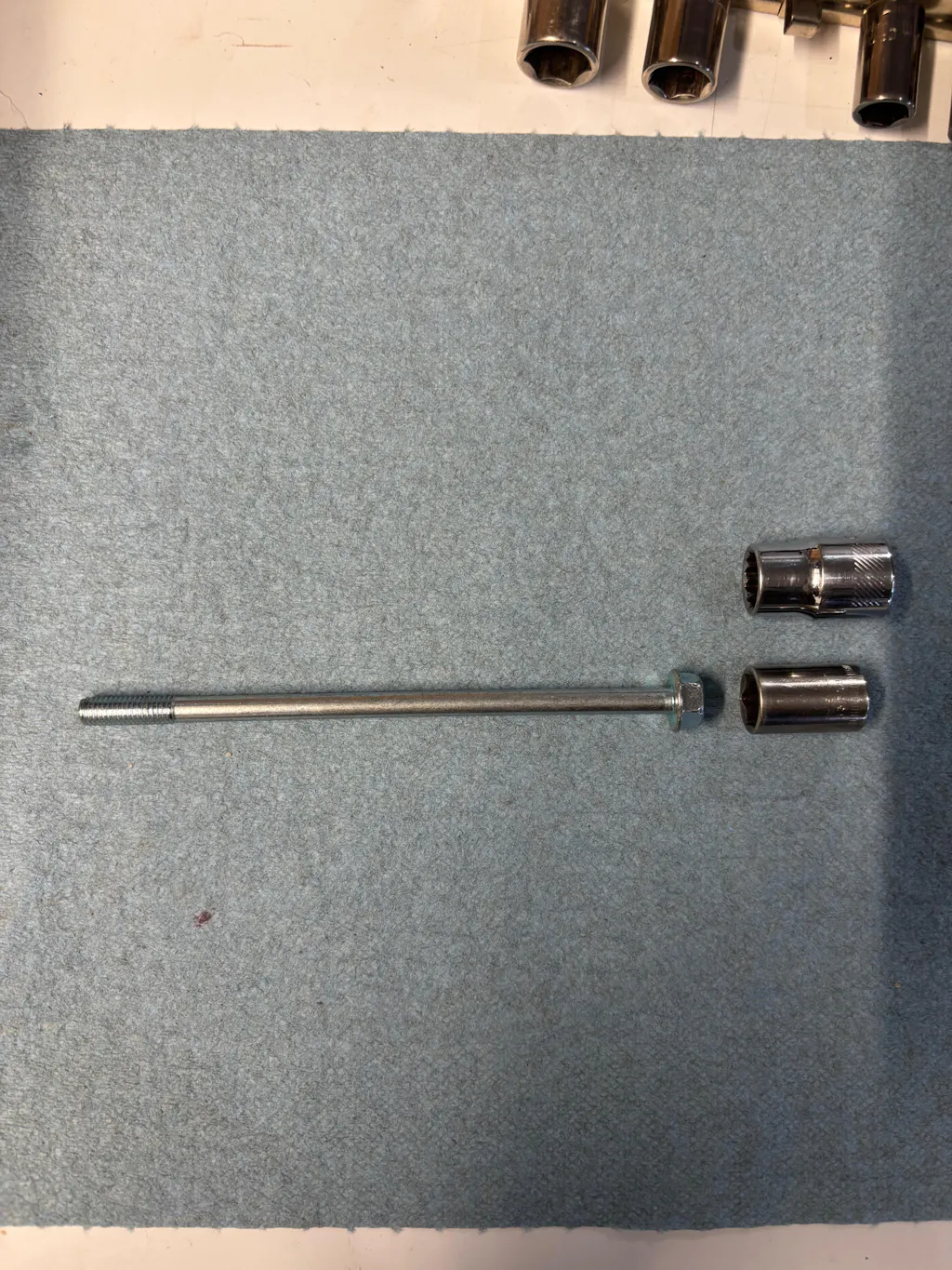 7. After torquing the head nuts. Place the 2 long bolts back into the cam chain tunnel. I broke one of these, requiring round 3. In the photo you’ll see that it’s best to use a 1/4” drive socket rather than a 3/8”. The 3/8” pushed the bolt head out enough that it damaged the threads causing the bolt to break, luckily it was in only finger tight!